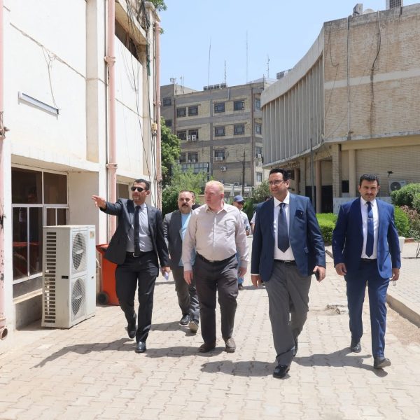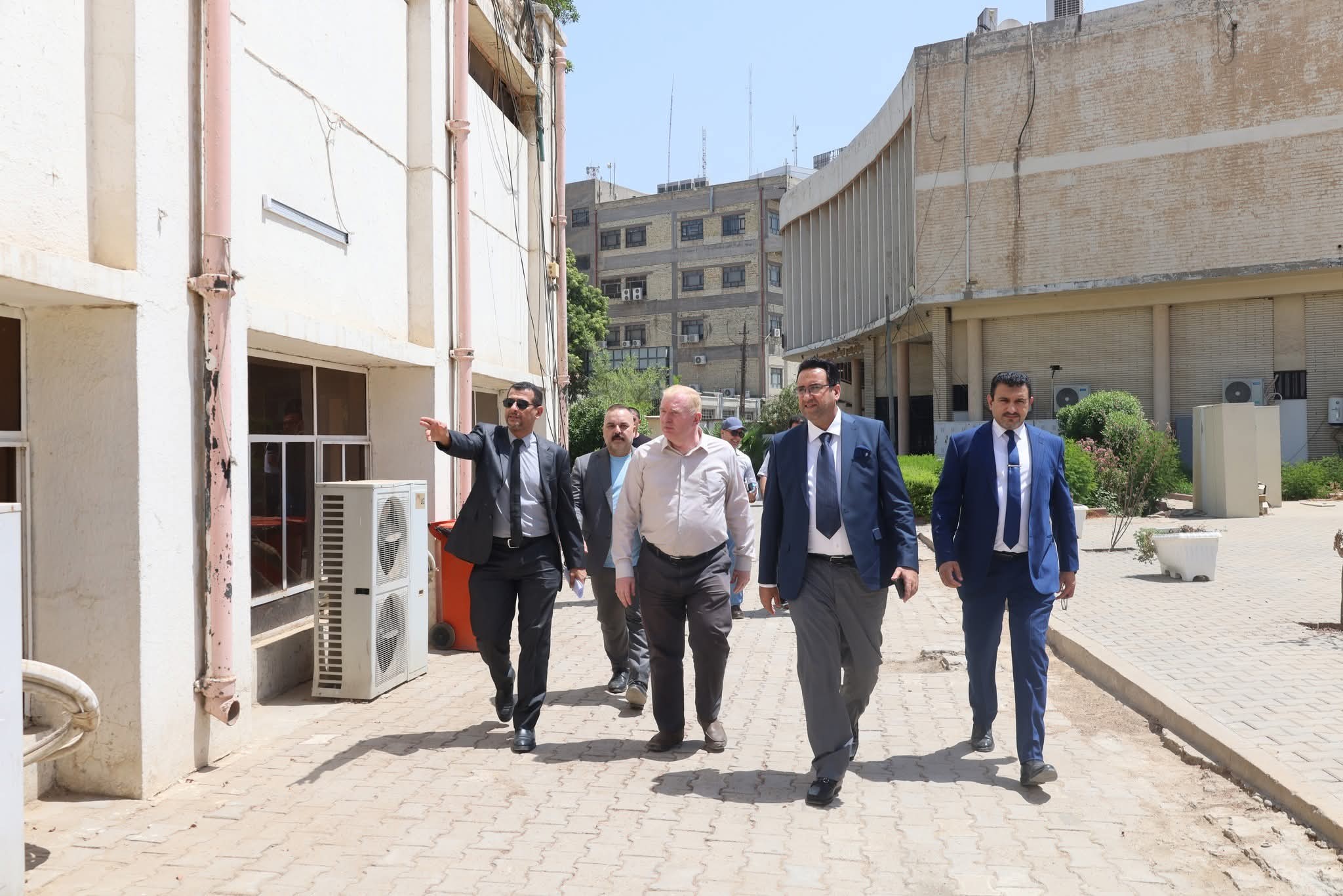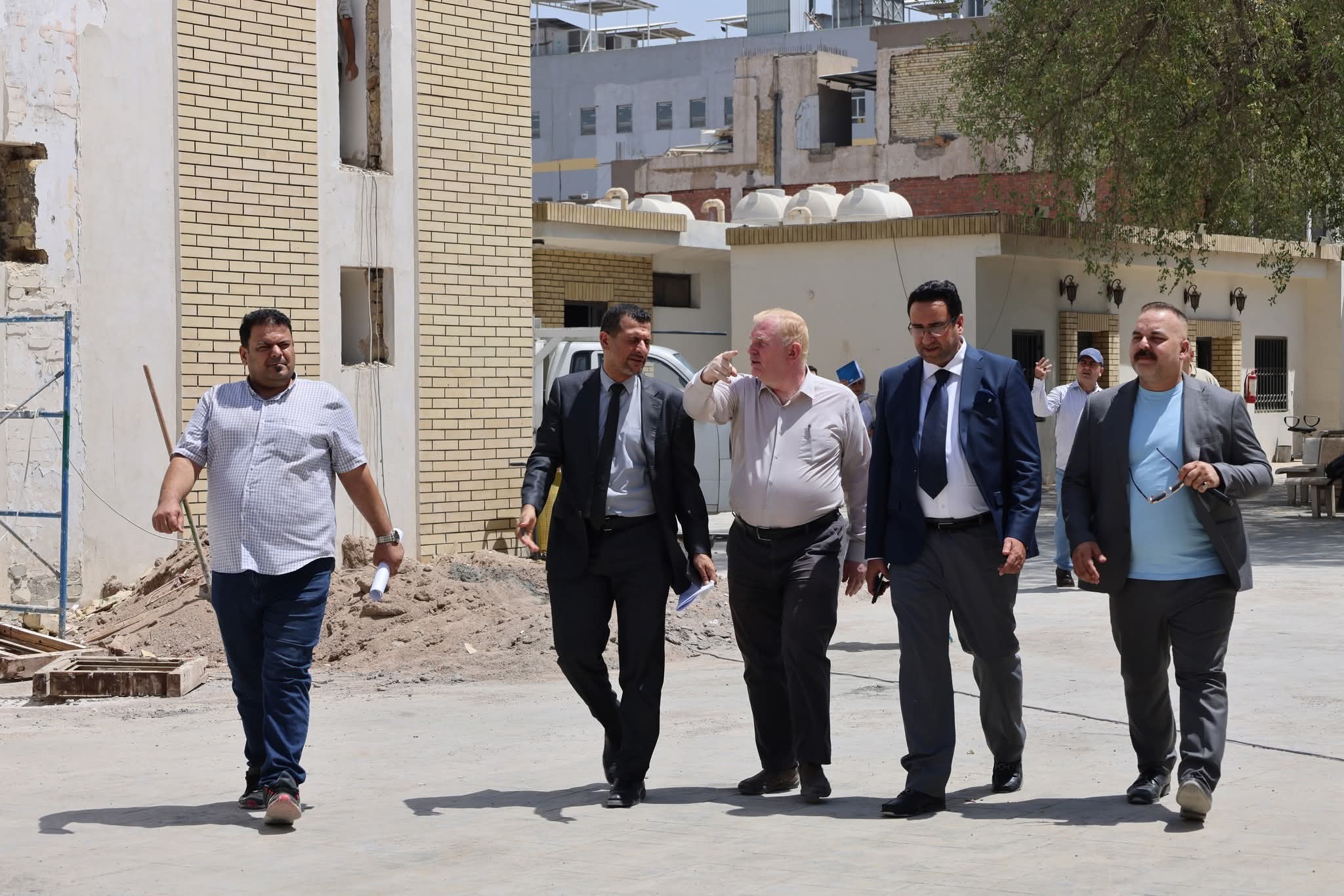 ضمن توجيهات رئاسة جامعة بغداد للنهوض بالمستوى التعليمي والبنية التحتية في الجامعة زار السيد مدير قسم الإعمار والمشاريع الأستاذ المساعد الدكتور باسم عبد الرزاق المحترم يرافقة معاونه مدرس مساعد حسن حيدر كمونة المحترم ومهندسي قسم الاعمار والمشاريع الاستاذ الدكتور مهدي كركوش ومدرس دكتور ماهر مراد كلية الطب يوم الأحد الموافق 17 أب 2025 للاطلاع على سير مشاريع التطوير الهندسية الجارية في الكلية .