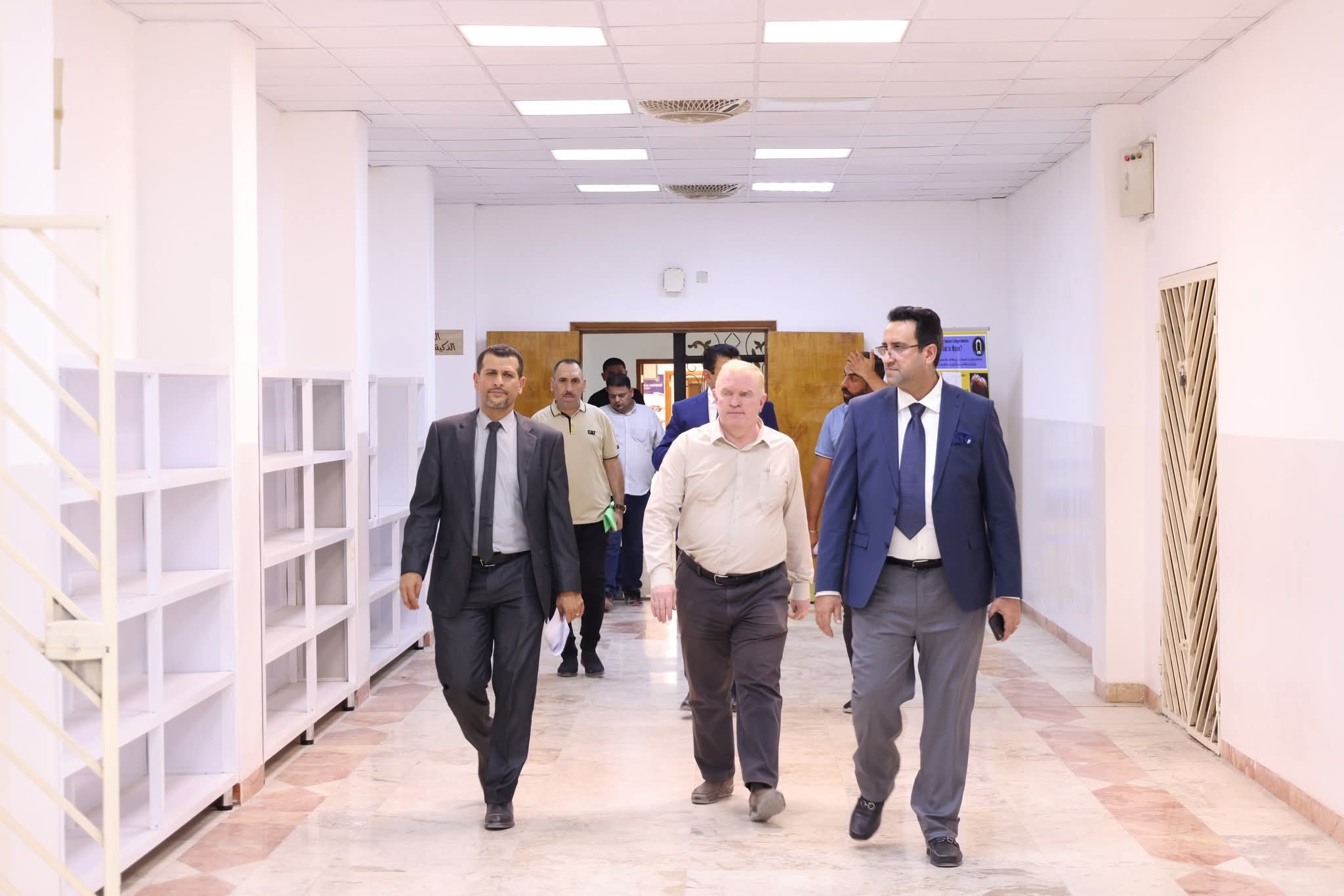 حيث تم الاطلاع على سير الاعمال في الكلية كما تمت مناقشة أعادة تأهيل بعض المباني القديمة وفق معايير السلامة وكفاءة الطاقة، مع الحفاظ على الطابع التراثي والمعماري للكلية.