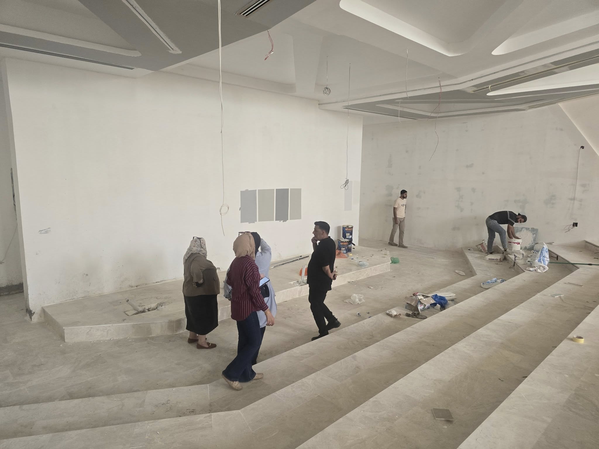 استمرار أعمال تأهيل القاعات الدراسية في كلية الصيدلة، بما في ذلك: