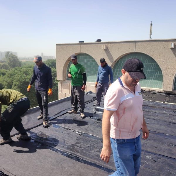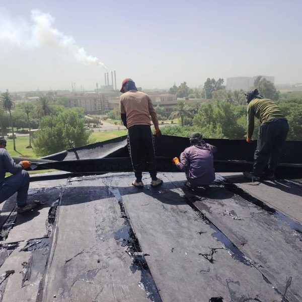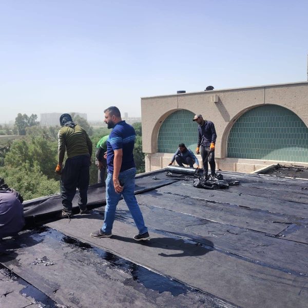المباشرة بتطبيق مادة الشتايكر لتحقيق عزل مائي وحراري عالي الجودة، بما يسهم في إطالة عمر السطح التشغيلي ويحافظ على كفاءة المبنى.